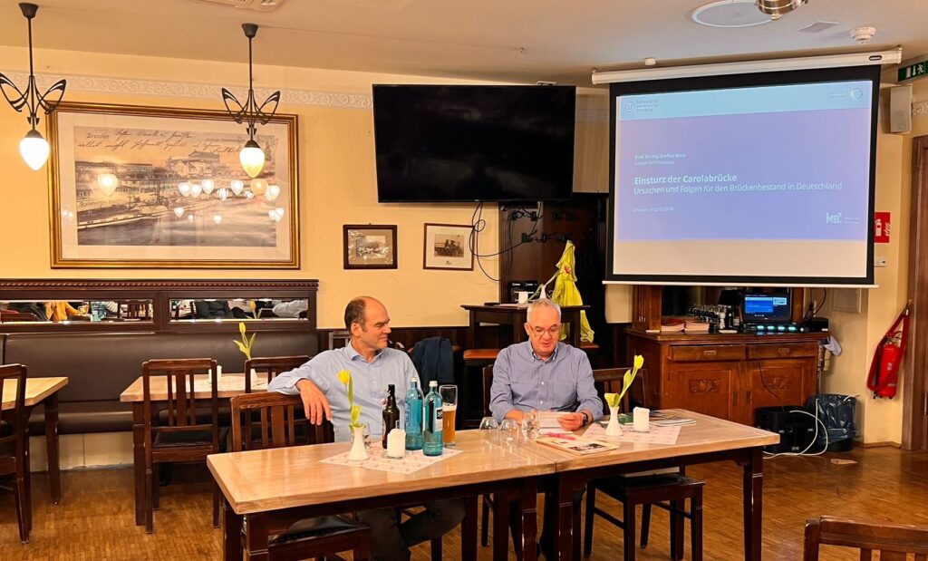 Die Carolabrücke – „mehr Zentrum geht nicht!“, sagt Steffen Marx. Und weiß, wovon er spricht: Denn der Direktor des Instituts für Massivbau an der TU Dresden ist der Mann hinter der Ursachenforschung zum Einsturz der Carolabrücke. Folgerichtig standen die Zukunft der neuen, alten Elbquerung und er im Mittelpunkt des letzten Clubabends im Dresdner Presseclub.